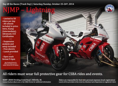 CSBA Presents our “Day @ the Races (Track Day) | Saturday & Sunday October 25-26th, 2014”