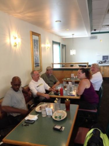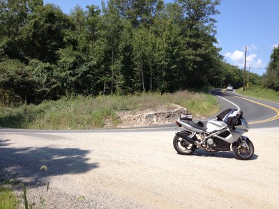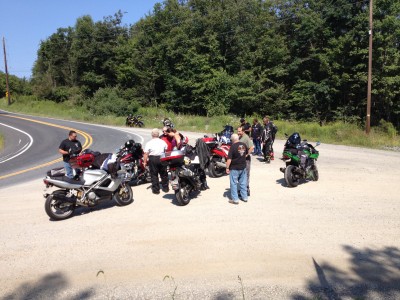 Well it’s another one for the books! This ride tends to be our “Usual Suspects” line-up, but we broke tradition with a different set of riders today. The original ride was canceled (August 2nd) due to inclement weather (just like last year), however that is the only thing similar to this ride from last year. Greetings and thanks are extended to everyone in attendance, which includes a new friend: (Walter) that met us at our recent MCC Sport Bike Day Event, Martin G, Andy R, Sandy K, Daniel G, Mike M (and his friend Luke), Allan C, Dylan P, Larry (The XIII) S, Carl (KPilot) M, Ron (Panda) W & myself. After a great breakfast, we all gathered, I shared the “Rules of the Road” and identified the “Safety Tip” for the day was “gravel and cinders” (which later becomes key). With that, we all huddled up, I gave a prayer for protection and thanks for a beautiful day and we split up into 2 groups and we were off. We tried to wait around for one remaining friend (Mike H), but the time was slipping by and the day’s heat was on our backs so we lagged a pace on RT 78 in hopes he would see us and catch up with us – I’m sorry to report we missed him, which I was saddened about – but the show must go on, so he’ll catch us next time I’m sure. We hit our first hairpin and the ride was officially underway.