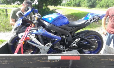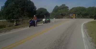Thursdays nights and Sundays are our preferred days to ride. We try to ride weekly, weather permitting. This past Sunday we had a guest rider go down.